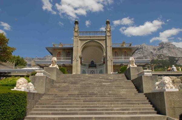 Нижняя часть Воронцовского парка в Алупке отличается чёткой, строгой планировкой и фигурной стрижкой растений. Здесь, как и в Нижнем парке, есть свои примечательные места, в их числе «Львиная терраса» - лестница из диабаза, на боковых выступах которой установлены три пары львов (спящих, пробуждающихся и бодрствующих), вылепленных из белого карракского мрамора. Авторство скульптур приписывают итальянскому скульптору Джовани Бонанни. Во всяком случае, считается, что именно в его мастерской появились эти царственные каменные изваяния, украшающие собой террасу и поныне. «Нижний» лев выполнен мастером, который великолепно передает состояние сильного, могучего животного, скованного крепким сном. Львиная терраса устроена перед южным фасадом Воронцовского дворца, который сейчас является частью Алупкинского дворцово-паркового музея - заповедника. С террасы открывается головокружительный вид на море.