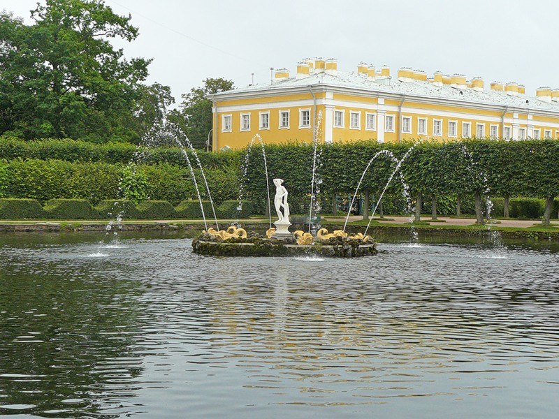 Перед галереями Большого дворца (напротив боковых флигелей - Гербового и Церковного) Верхнего сада расположены два фонтана квадратных прудов. Эти два фонтана находятся в квадратных бассейнах (Хотя истинная форма бассейнов не квадрат, а прямоугольник, их всё же называют