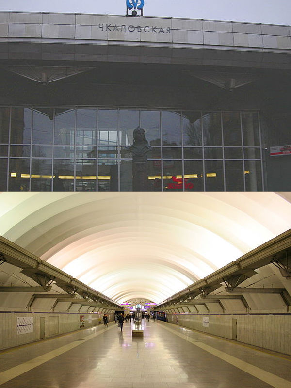 Станция метро «Чкаловская» построена по проекту архитекторов А. С. Константинова и В. С. Волонсевича