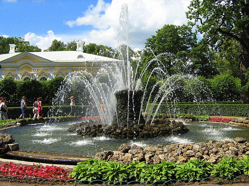 Фонтан Нептун был установлен в 1737 году. На южной стороне бассейна устроили трехступенчатый каскад со статуей Зимы, отлитой Растрелли. Из-за ветхости, к концу XVIII века Нептунову