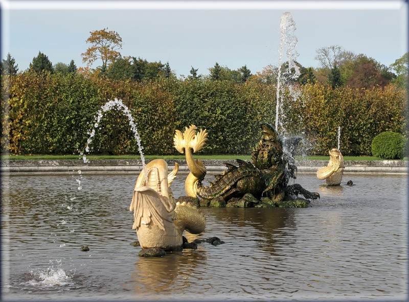 Территория Нижнего парка Петергофа в Санкт-Петербурге начинается от северного фасада Большого дворца, высившегося на 16 метров на природном уступе до береговой линии Финского залива.
