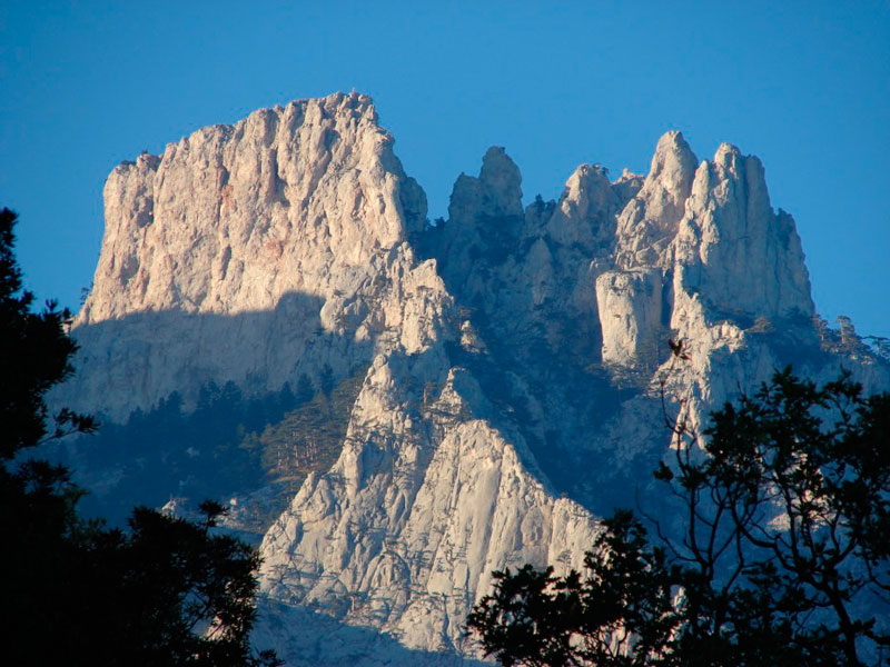 Гора Ай-Петри поражает туристов причудливым цветом скал и линией фигурных зубцов. Если посмотреть на вершину снизу вверх, можно увидеть четыре больших зубца. Кроме этих, больших, здесь имеется и множество мелких. Зубцы – результат выветривания рассеченного трещинами известнякового монолита.